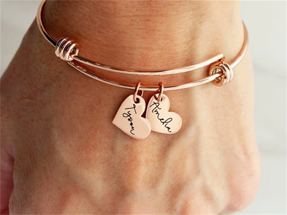 Celebrate special moments with this elegant custom heart pendant bracelet crafted from durable stainless steel. Available in gold, silver, or rose gold, this bracelet features a heart charm personalized with your chosen name, adding a touch of sentiment to its classic design. Perfect for birthdays, anniversaries, weddings, and more, this personalized name bracelet is a thoughtful gift that combines timeless style with personal meaning, making it a cherished accessory for any occasion.
