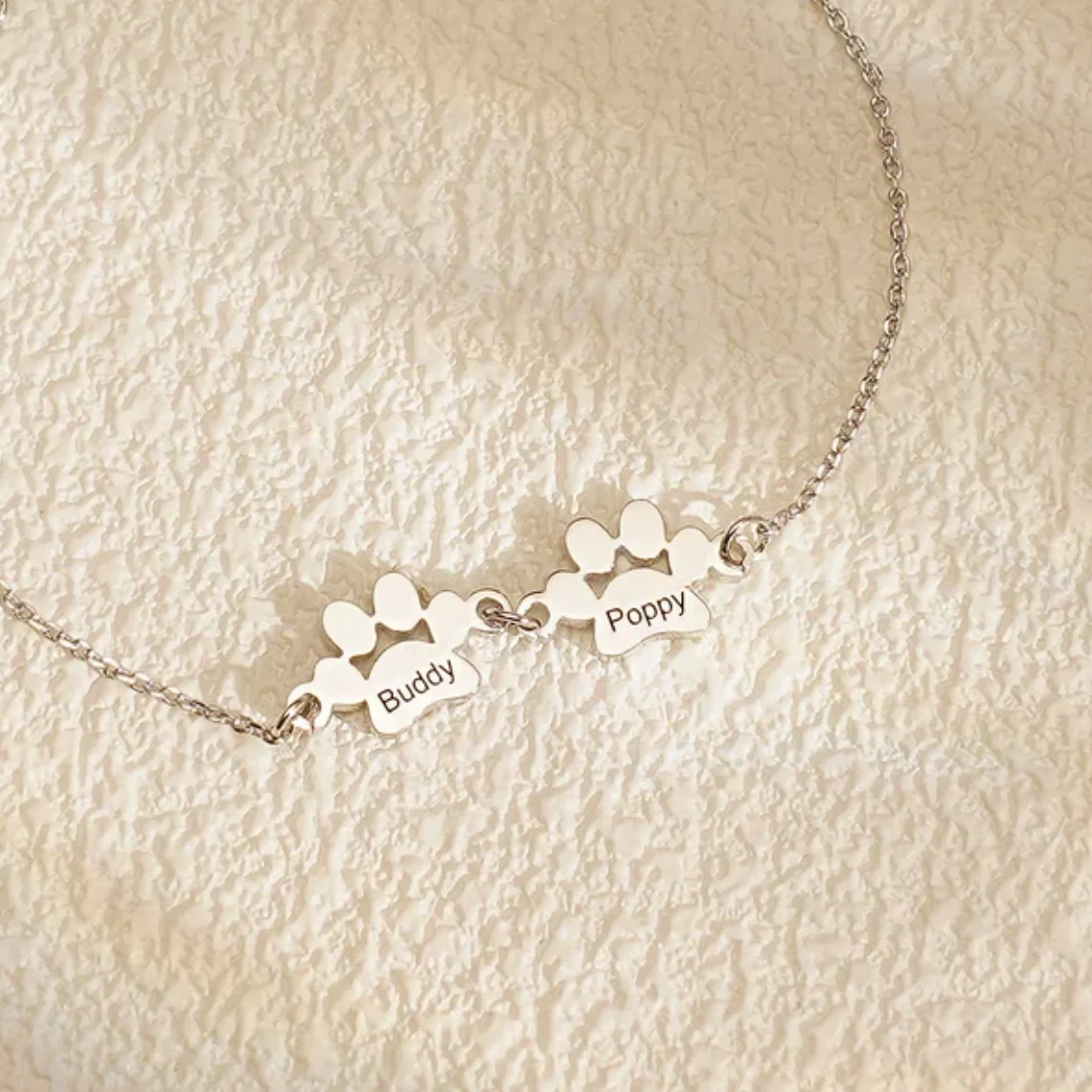 Bracelet personnalisé de patte de chat, nom sculpté en acier inoxydable, style mignon, simple et à la mode, cadeau d’anniversaire Veuillez nous envoyer le message que vous souhaitez personnaliser.