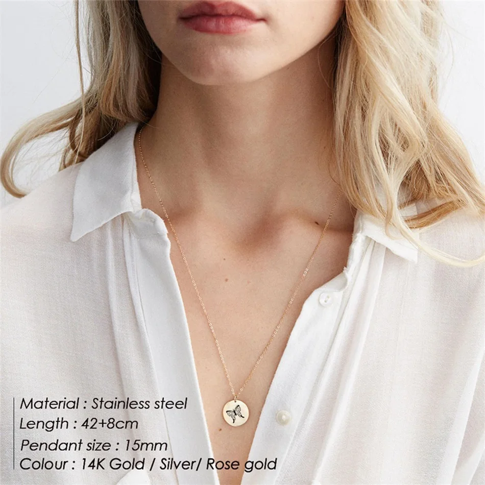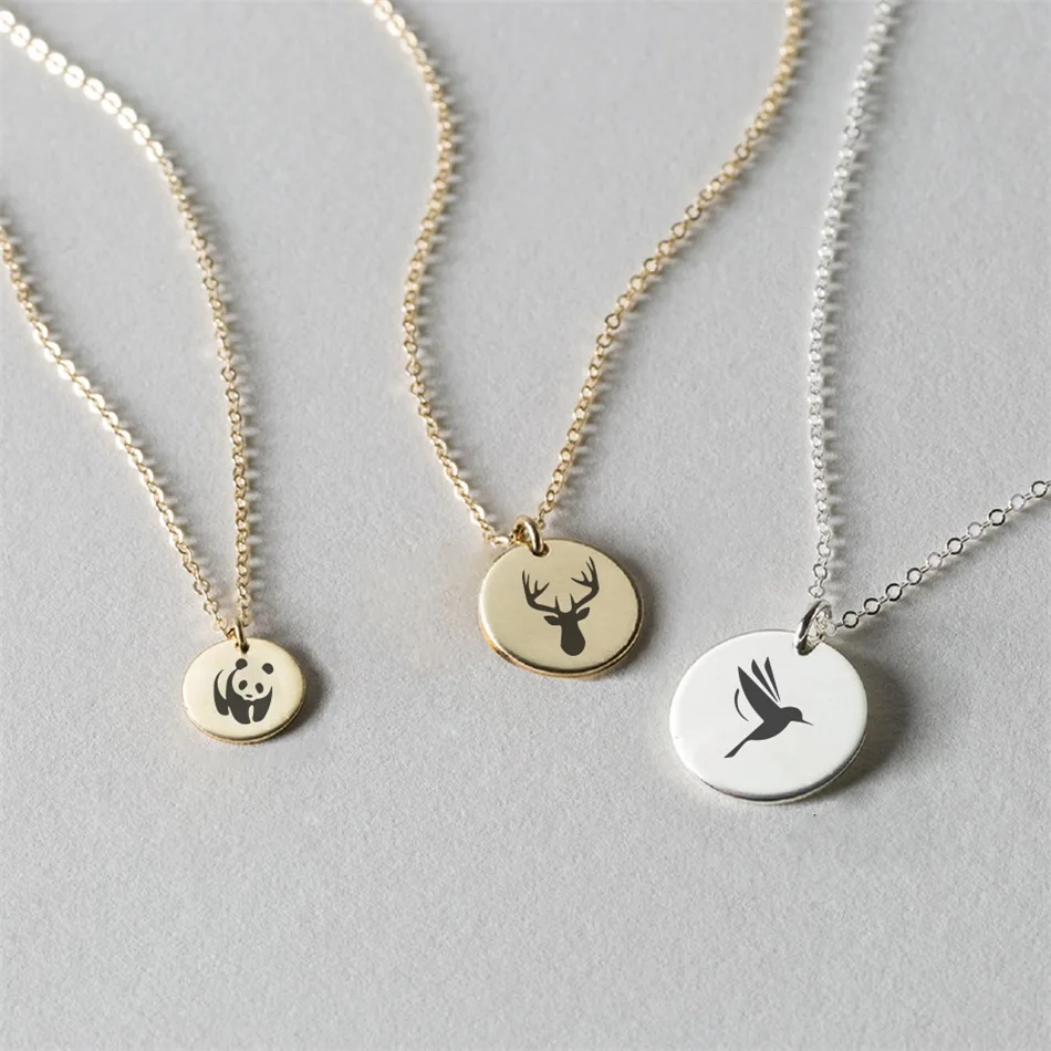 Celebrate your connection to nature with this engraved animal pendant necklace in stainless steel, available in gold, silver, or rose gold finishes. Designed for lovers of unique accessories, each round pendant is meticulously engraved, creating a meaningful gift for special occasions. With its trendy look and tarnish-resistant durability, this piece is perfect for daily wear at work, school, or parties.