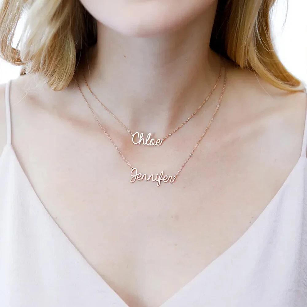 This custom double name choker necklace is crafted in durable stainless steel, available in silver, gold, and rose gold. Designed as a meaningful accessory, it features two names on a classic link chain, making it an ideal gift for special occasions like Léon Day or birthdays. This elegant, personalized necklace is perfect for adding a unique touch to any outfit.
